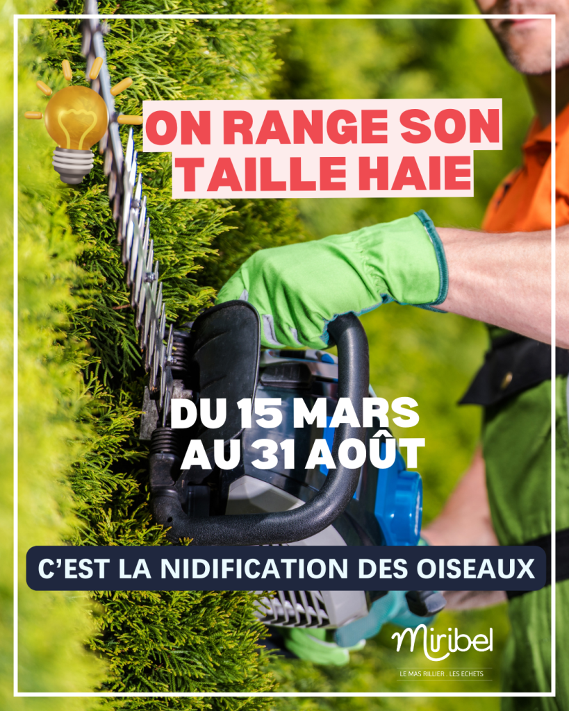 Afin de préserver la biodiversité locale, l’office français de la biodiversité recommande d’éviter de tailler les haies, d’élaguer les arbres ou d’abattre des arbustes pendant cette période.